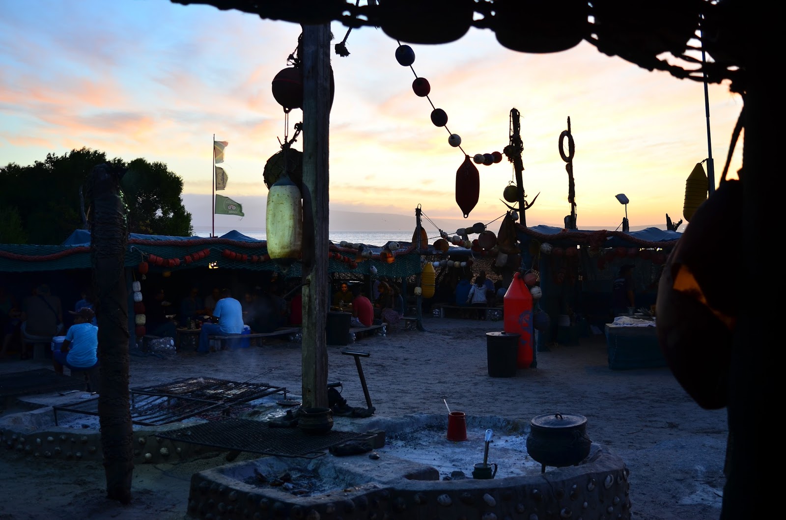 décoré de filets marins, de bouées et de bâches, tout ceci avec une belle vue