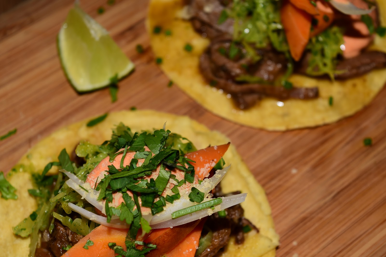 le Mexique avec des tacos d’agneau cuit à basse température avec de l’achiote