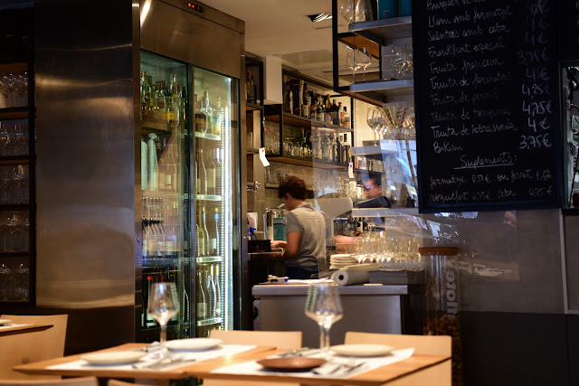 Le choix des vins est ici vraiment magnifique, par exemple je ne connais pas d’autres établissements à Barcelone où il y a une telle sélection de sherry ou vins de jerez, allant du sec au cream, le tout inscrit sur des ardoises murales. Et le choix des vins du moment, Espagnols est toujours magnifique. Je sais que c’est beaucoup de compliments, mais ce n’est que la réalité.