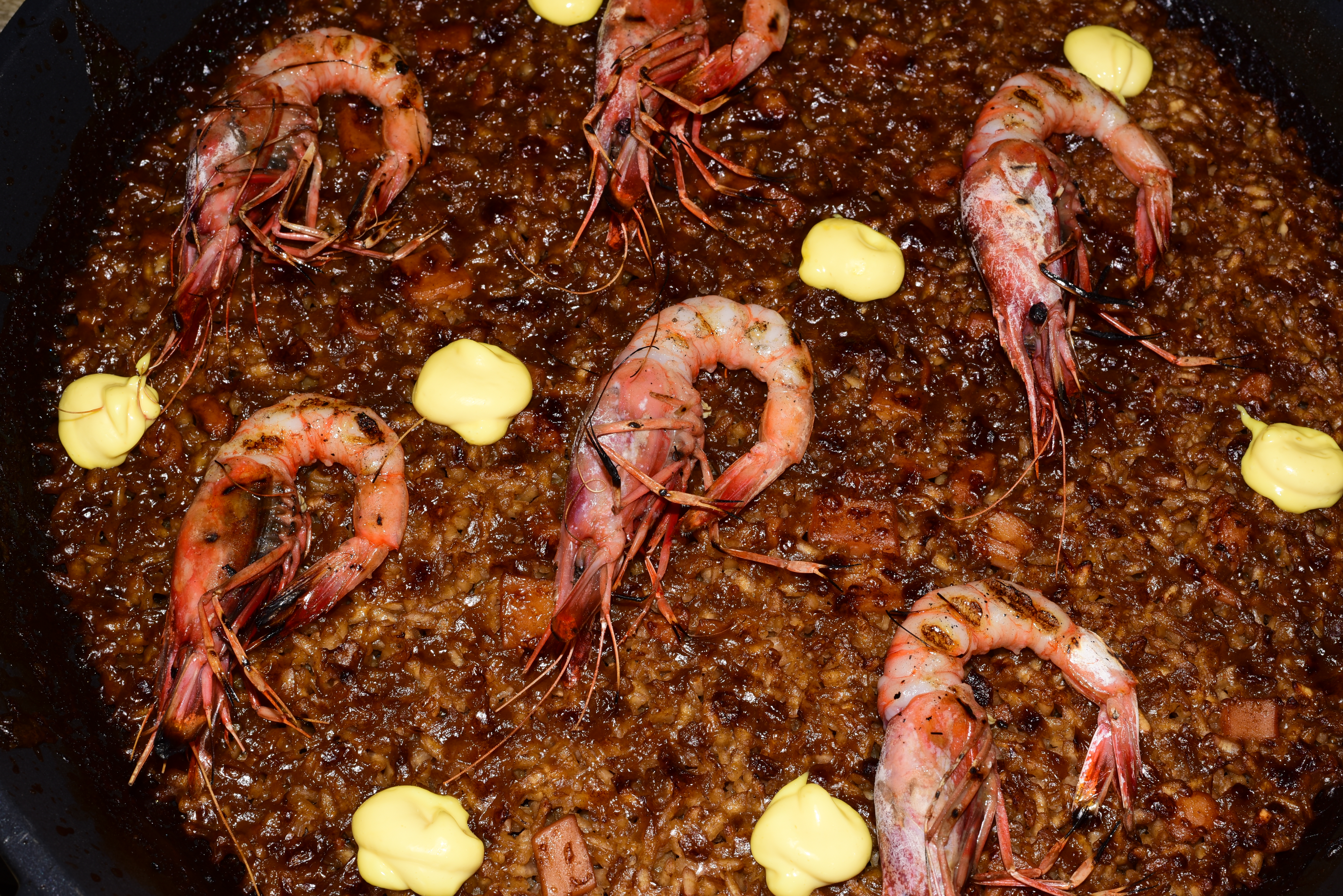 Pour quelqu’un qui habite aussi Barcelone, se lancer dans un riz est presqu’un peu téméraire ! Que nenni ! Leur arroz ou riz de calamar et gambas de méditerranée, aïoli safran est vraiment sublime et n’a rien à envier les riz du voisin. Déjà la cuisson avec la soccarat est parfaitement réussie, le sofrito est bien savoureux et la cuisson des crevettes et comme il se doit, à savoir juste snackées, donc presque crues. Et le top c’est qu’il s’agit des meilleures crevettes qu’il soit, les gambas de Palamos.. Chapeau !