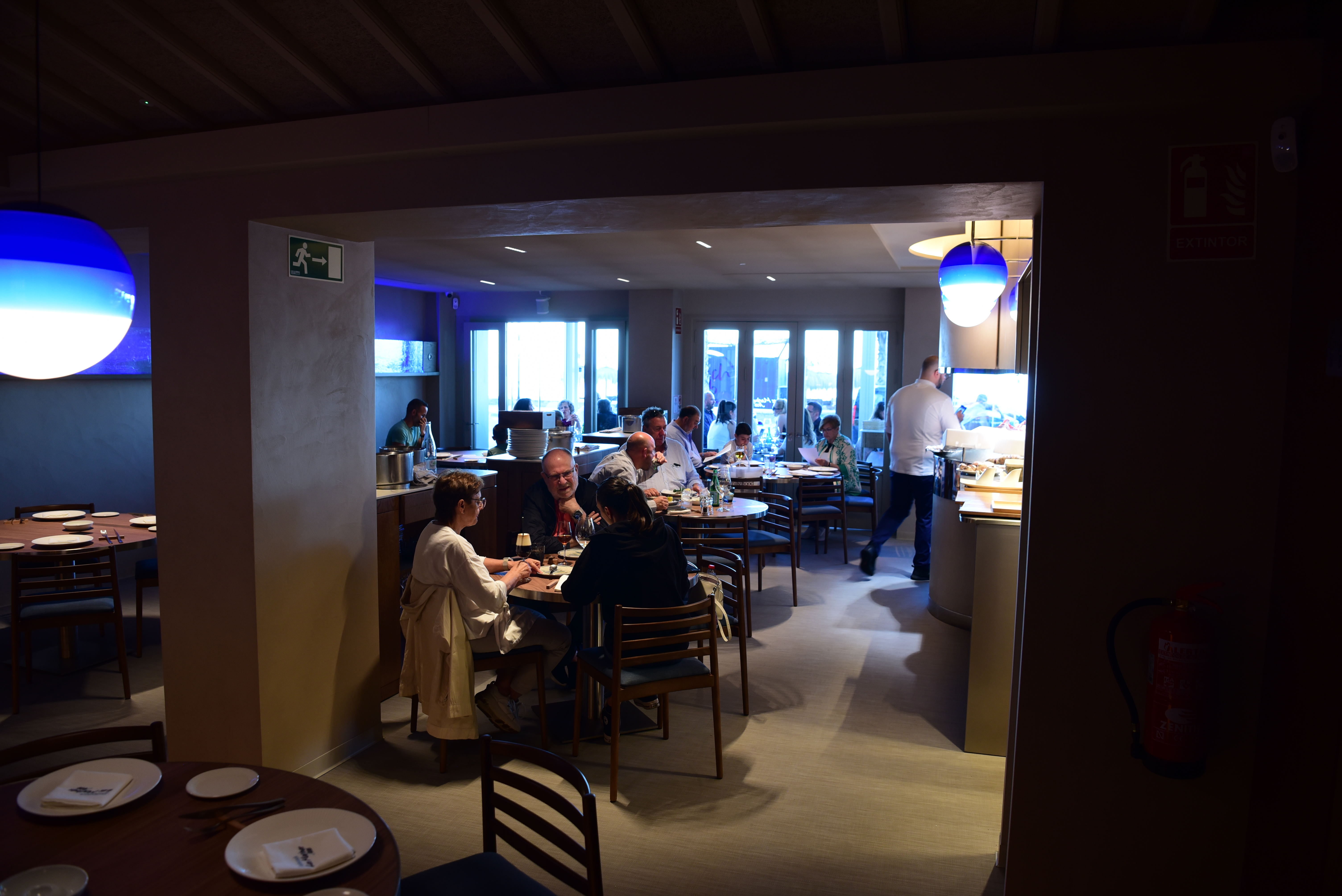 A l’intérieur, un comptoir, quelques tables hautes ou l’on commence a grignoter bien entendu quelques tapas, principalement des fruits de mer.