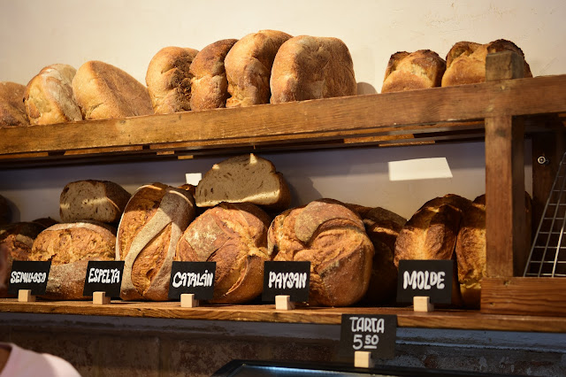 Décoration de style industrielle pour cette boulangerie qui maintenant a quelques autres adresses du boulanger argentin Francisco Seubert. Briques apparentes sur les murs, carreaux de ciment, de verre et d’argile sur le comptoir personnalisé. Étagères en bois naturel brut où sont exposés les pains. Bien entendu, ce n’est pas sur place que le pain est fabriqué mais dans le quartier de Horta.